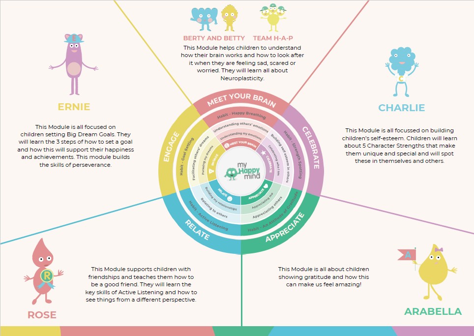 At North Farnborough Infant School, we are committed to supporting every child’s wellbeing alongside their learning. As part of our PHSE curriculum, we use myHappymind, a whole-school programme designed to help children understand their feelings, build confidence and develop positive relationships. myHappymind is an NHS-backed curriculum in primary schools, secondary schools, and nurseries and is focused on building resilience, self-esteem, and happiness in children.